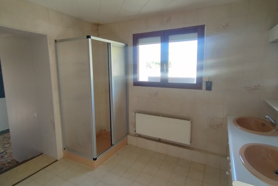 Dans village du parc du Vexin – Maison ancienne individuelle en pierre, élevée sur terrain de 540 m², avec cour (possibilité de rentrer 2 voitures) et jardin. Comprenant : entrée avec cagibi, séjour avec accès terrasse et cuisine US aménagée équipée (plaques induction, hotte) ; à l’étage 4 grandes chambres dont 2 en enfilade – 2 balcons sud, grande salle d’eau, wc + coin buanderie. Cave voûtée et garage avec coin chaufferie (chaudière neuve, gaz à condensation). Quelques travaux à prévoir (néanmoins habitable). DU CHARME, DE BEAUX VOLUMES et DE LA LUMIÈRE !