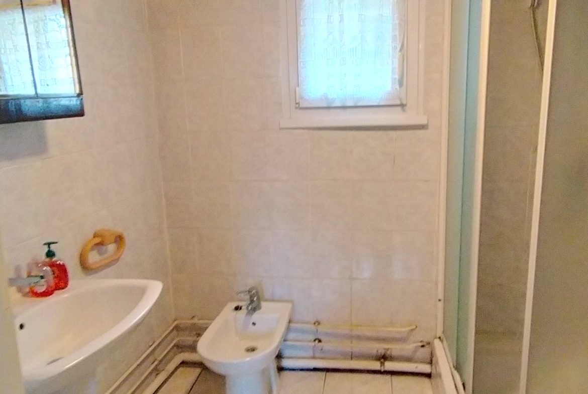 Dans petite résidence calme (4 lots), en copropriété (sans charges de copropriété) – Appartement de type F3 / F4, comprenant de PLAIN-PIED : entrée, séjour avec placard, cuisine, salle d’eau + coin buanderie, wc, 2 chambres en enfilade dont 1 grande avec placard. Cour pavée privative d’environ 150 m², avec possibilité d’y rentrer au moins 2 voitures, préau et chaufferie (grenier au-dessus). Pièce indépendante d’environ 30 m² + wc (possibilité studio). TRAVAUX A PRÉVOIR. Une alternative intéressante aux appartements traditionnels, avec du potentiel et de l’espace !