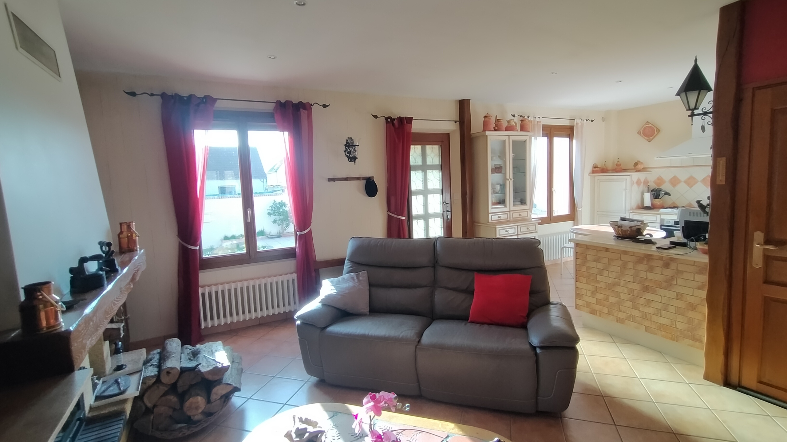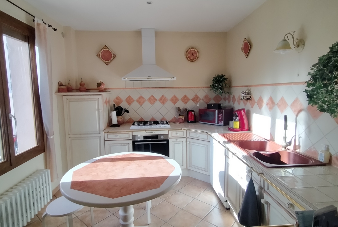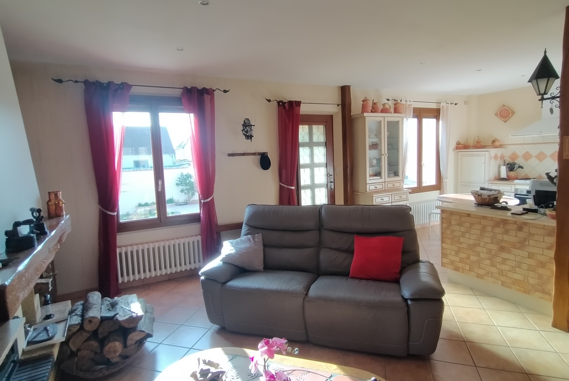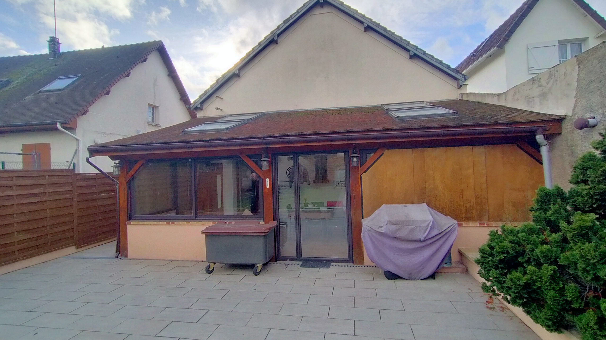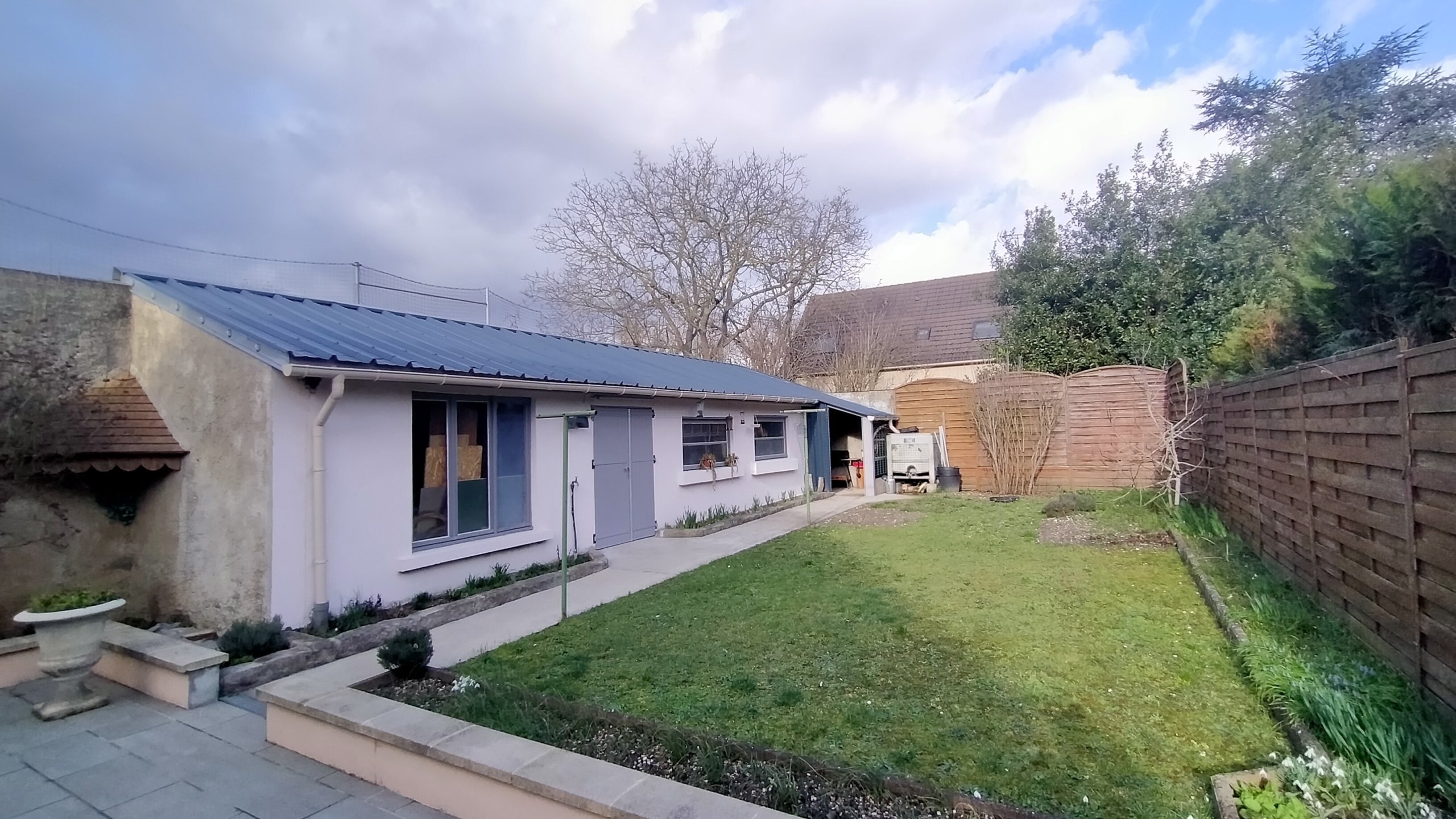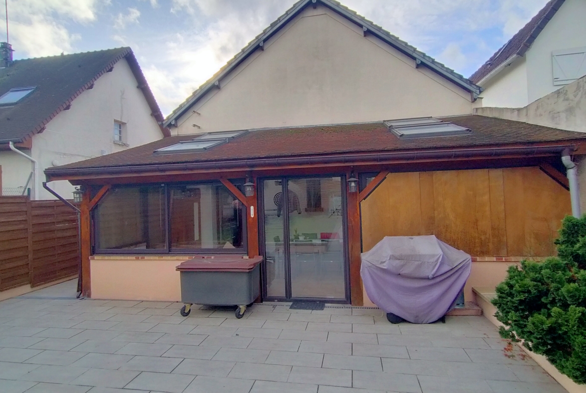 Proche toutes commodités à pied – Maison ancienne rénovée, élevée sur caves, comprenant : cuisine US aménagée équipée, séjour double avec cheminée insert, véranda d’environ 28 m² chauffée, grand bureau avec placards (possibilité chambre) et wc ; à l’étage palier, 3 chambres avec placards dont 1 avec mezzanine, salle d’eau aménagée + wc suspendu. Jardin clos sans vis-à-vis avec dépendance viabilisée (eau, électricité et évacuation assainissement, pour un aménagement possible en studio). Abri et garage indépendant. ÉTAT IMPECCABLE !