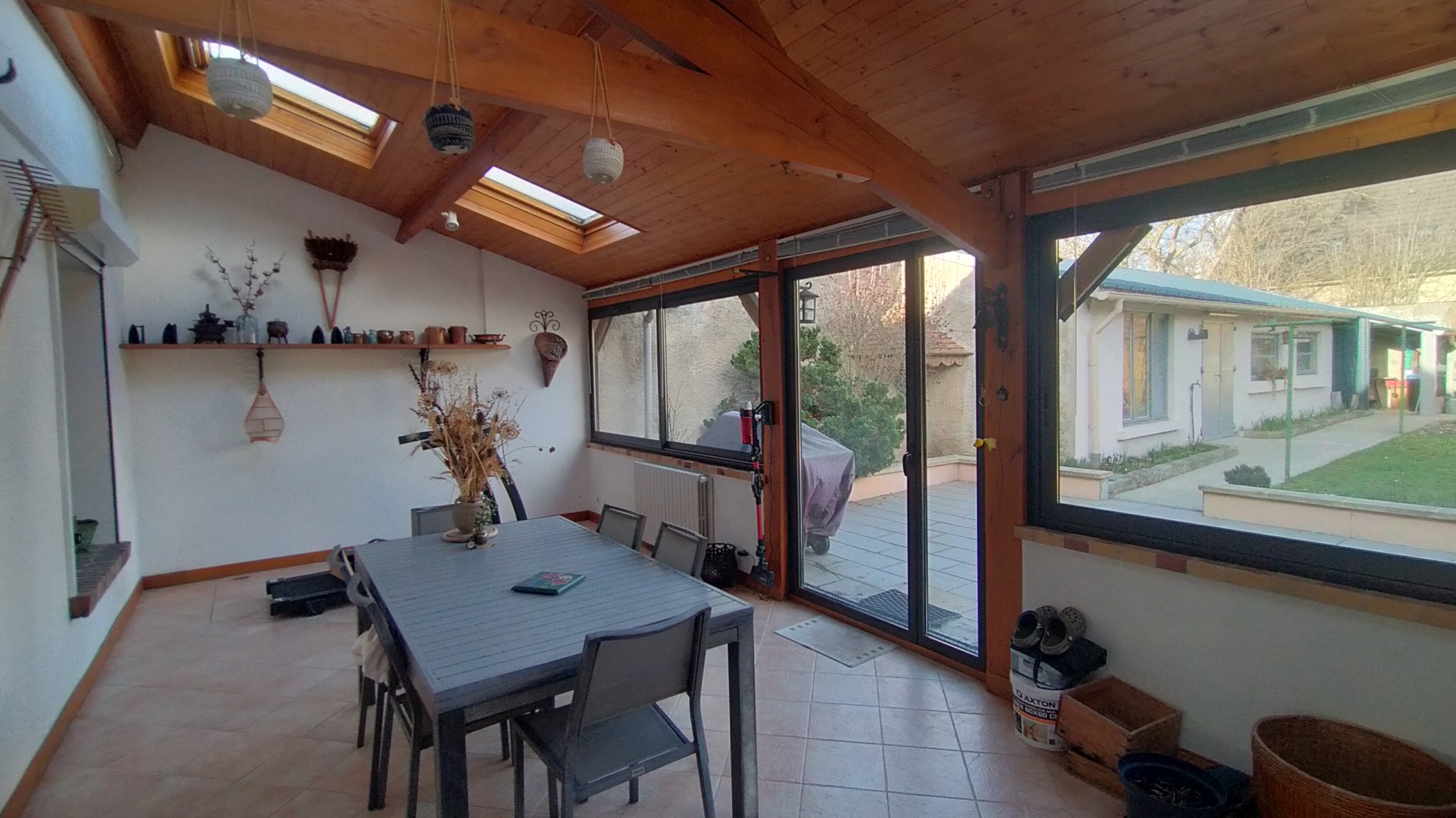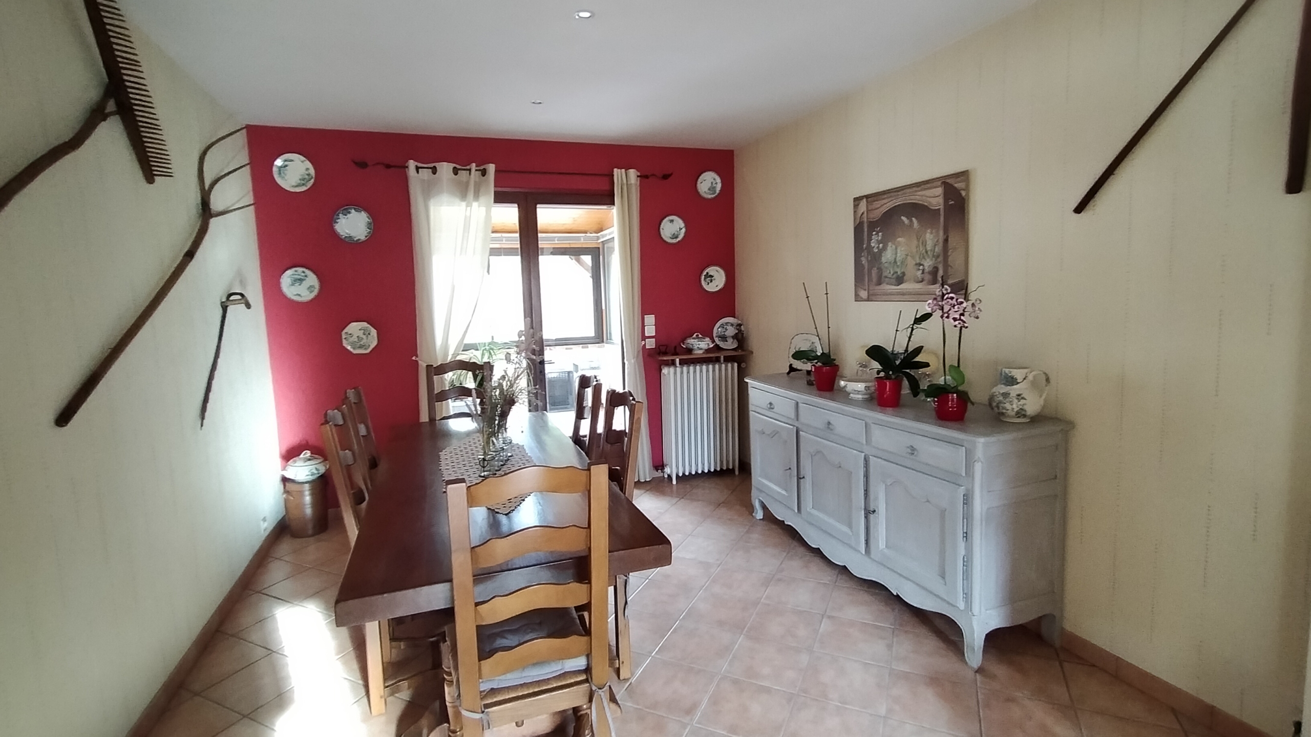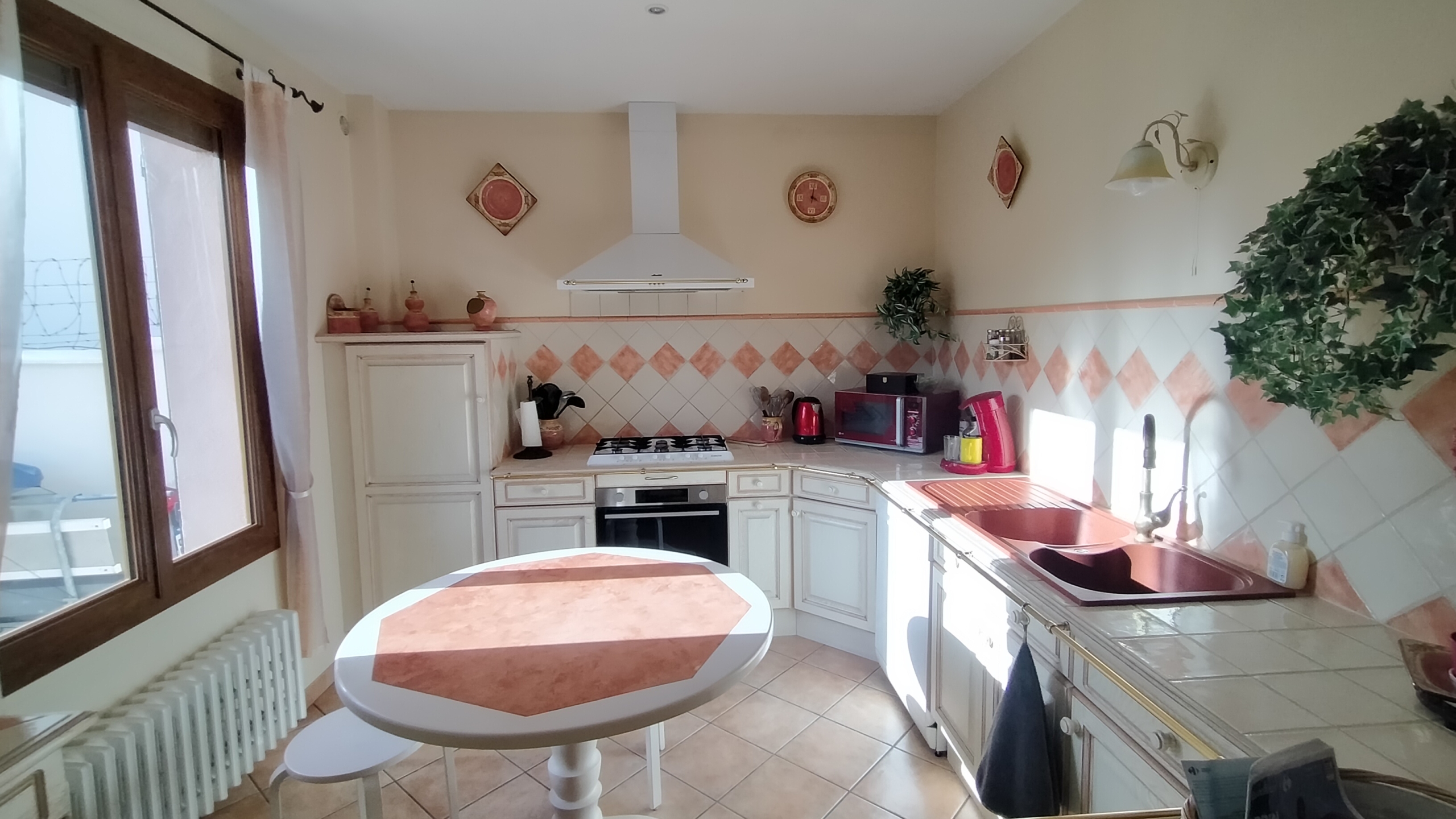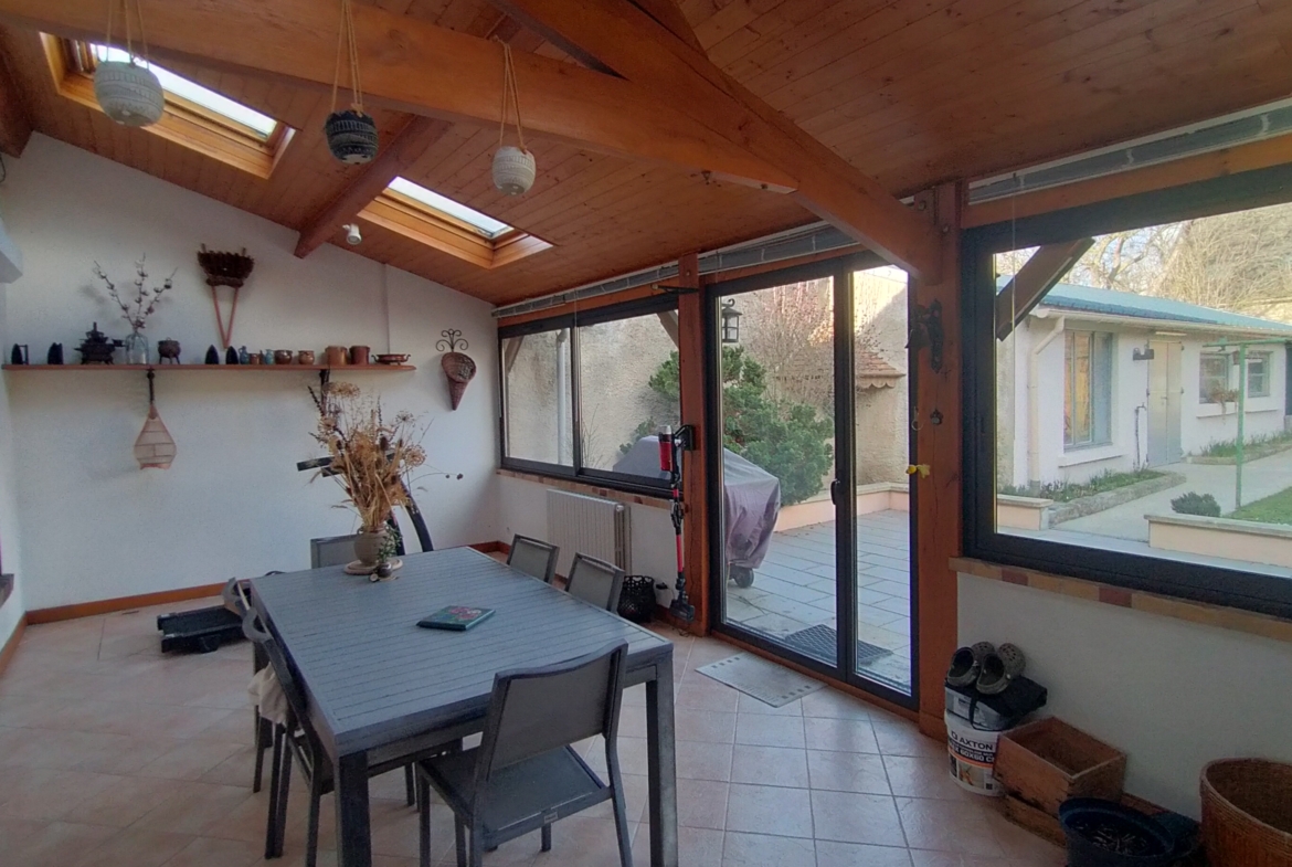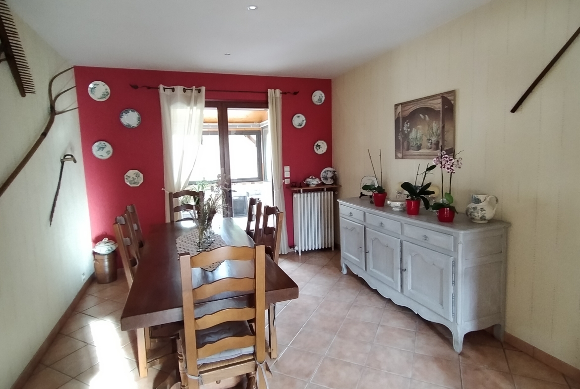 Proche toutes commodités à pied – Maison ancienne rénovée, élevée sur caves, comprenant : cuisine US aménagée équipée, séjour double avec cheminée insert, véranda d’environ 28 m² chauffée, grand bureau avec placards (possibilité chambre) et wc ; à l’étage palier, 3 chambres avec placards dont 1 avec mezzanine, salle d’eau aménagée + wc suspendu. Jardin clos sans vis-à-vis avec dépendance viabilisée (eau, électricité et évacuation assainissement, pour un aménagement possible en studio). Abri et garage indépendant. ÉTAT IMPECCABLE !