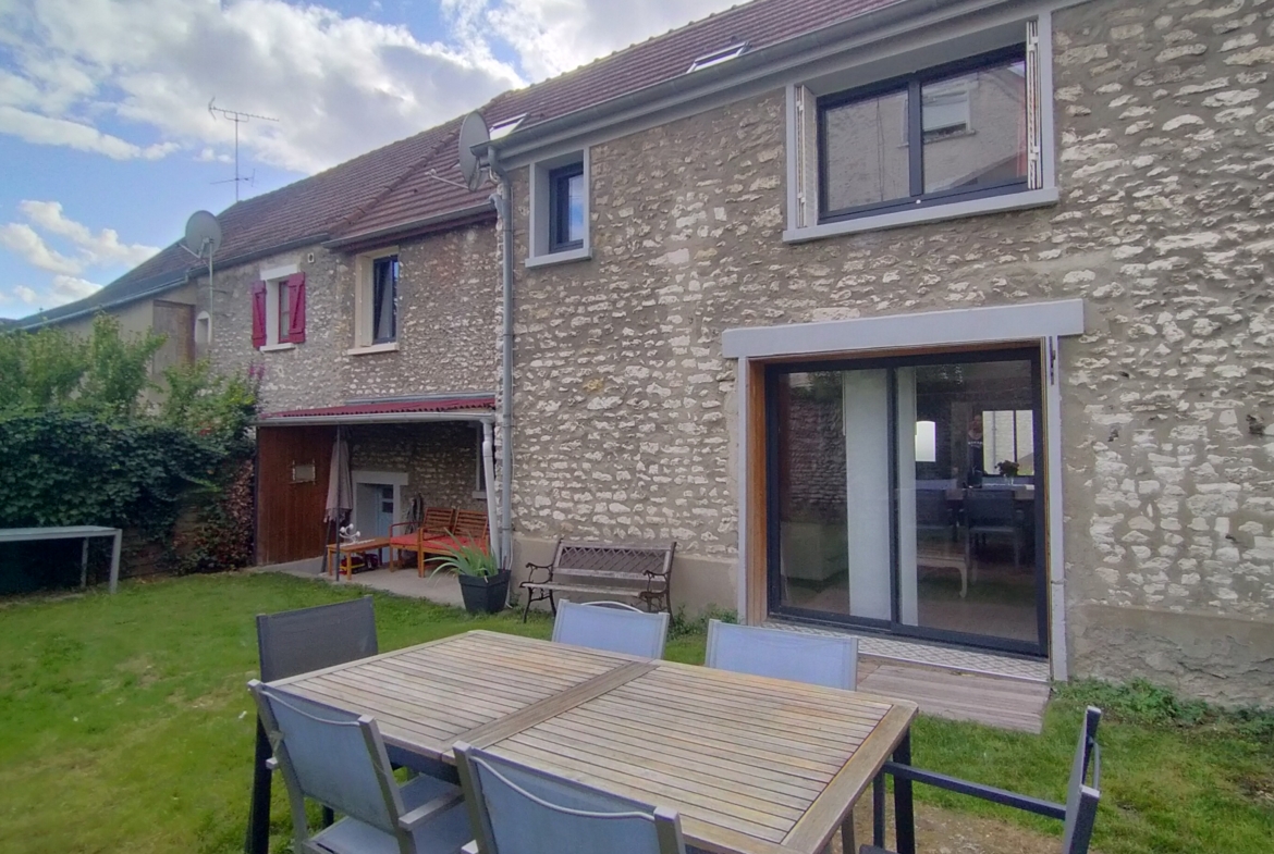 Dans village du Vexin, avec toutes commodités (écoles, commerces, maison médicale) – Maison ancienne entièrement rénovée, élevée sur caves, comprenant : cuisine ouverte aménagée + hotte, séjour avec poêle et accès jardin, 5 belles chambres, bureau avec placards, coin buanderie, dressing, salle d’eau (douche à l’italienne), 2 wc. Chaufferie et atelier. Terrain de 305 m² offrant la possibilité de rentrer 1 ou 2 voitures, avec jardin clos de murs +petite dépendance (cuisine d’été et débarras). BEAUCOUP DE CHARME et DU VOLUME ! Idéal famille et amoureux de l’ancien. Classe énergétique D (Consommation 235 kWhEP/m².an)